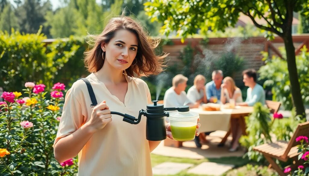 - Preparando un repelente casero mezclando aceite de citronela con un aceite portador.